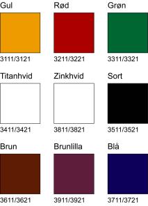 | Farvenuancer har mange kaldenavne - "Svenskrød", "Falurød", "Ultramarineblå", "Skagengul", "Dodenkopf" osv. Kaldenavne som opfattes forskelligt fra person til person. Kaldenavne er derfor subjektive og kan til tider forekomme upræcise. Linolie 1-2-3 bruger derfor ikke disse populære, men også upræcise kaldenavne til vores farver. Men som det ses af farvekortet, findes de traditionelle og populære farver naturligvis også hos Linolie 1-2-3. | ||