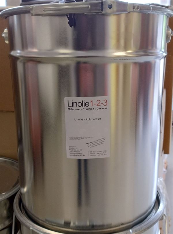 Koldpresset jomfrulinolie (grunding), fremstillet på førstegangs koldpresset hørfrø. Uden tilsætning af svampemiddel (indendørs brug).