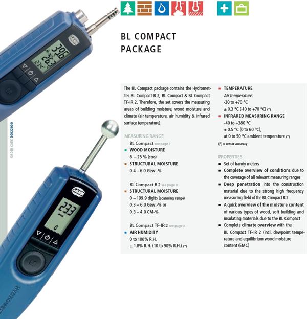 Et hurtigt overblik over fugtindholdet af forskellige træsorter, blød bygning og isoleringsmaterialer på grund af BL Compact