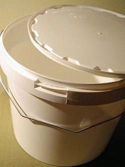 (inkl. moms)10 liter plastspand med håndtag og låg i en kraftig god kvalitet (hvid). Bruges til at mixe maling i og til opbevaring. Rummer ca. 12 liter fyldt til randen.